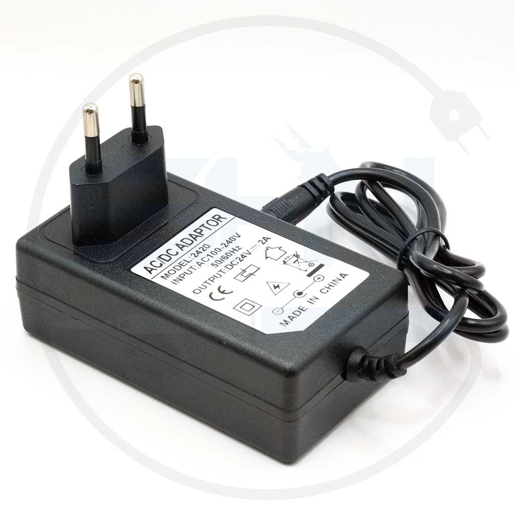 • آداپتور دیواری با خروجی 24 ولت DC و جریان 2 آمپر (48 وات)