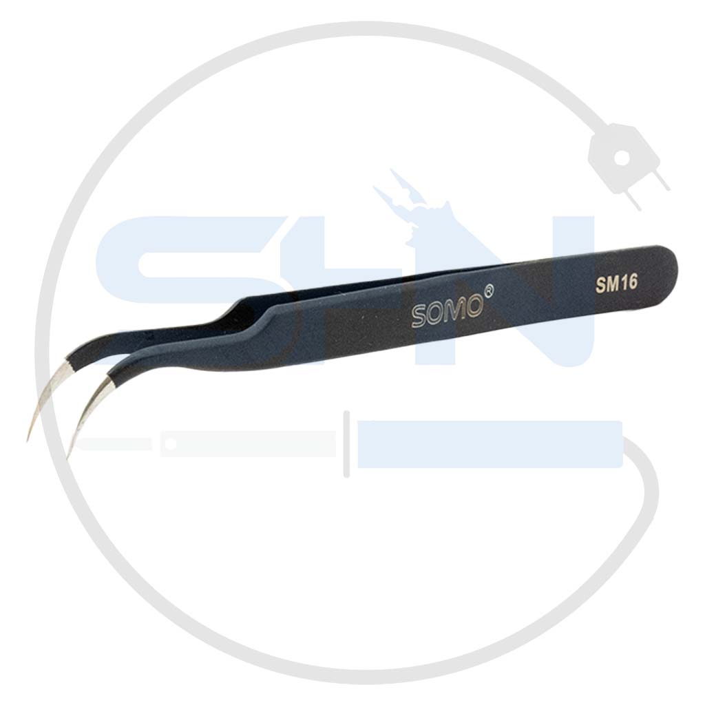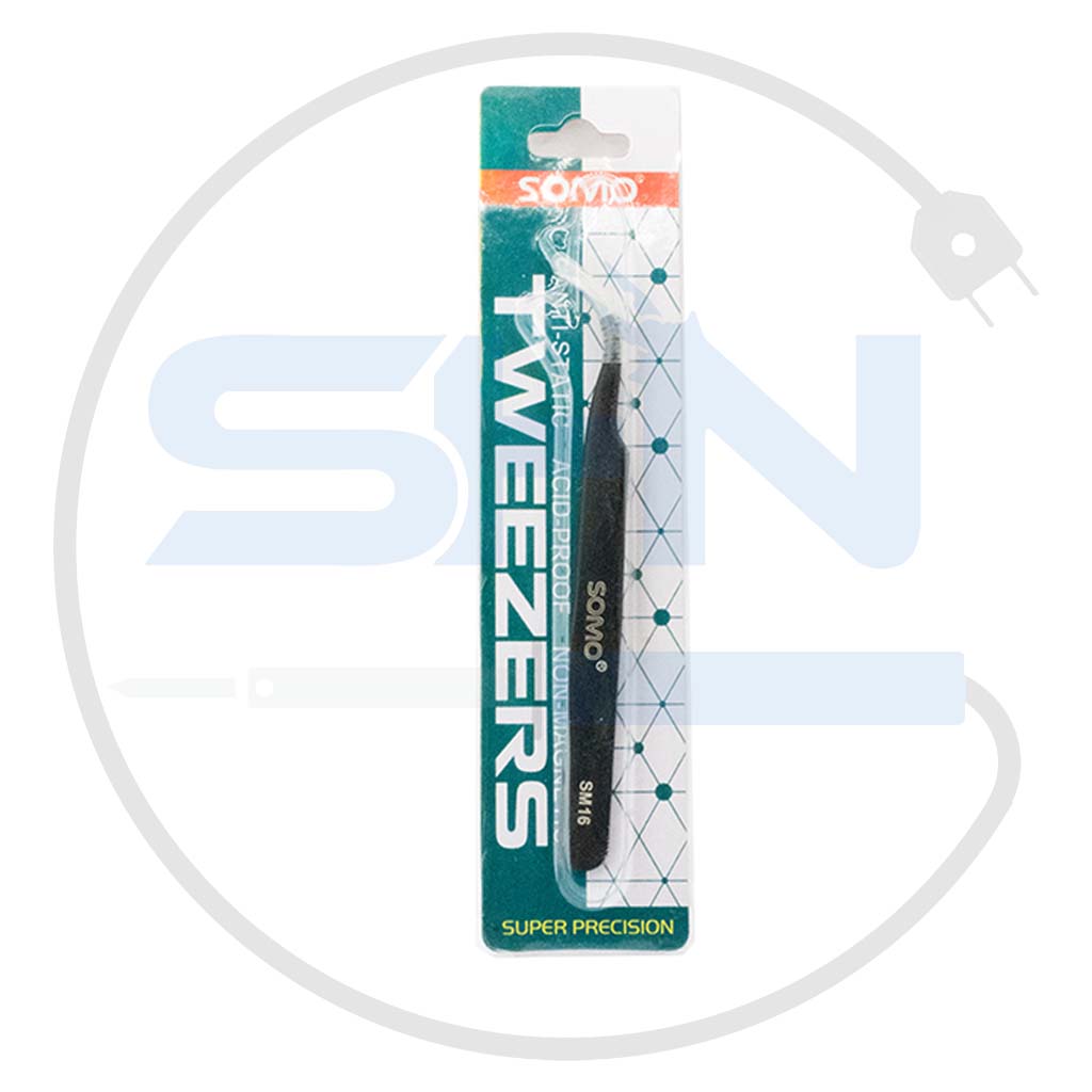 پنس حرفهای SOMO SM16 با نوک سرکج و طراحی ضد الکتریسیته ساکن (ESD Safe)، ابزاری ایدهآل برای کار روی قطعات حساس الکترونیکی و ظریف است. این مدل از جنس استیل ضدزنگ با روکش ضد اسید و ضد مغناطیس ساخته شده تا ضمن دقت بالا در کار، ایمنی قطعات شما را تضمین کند.